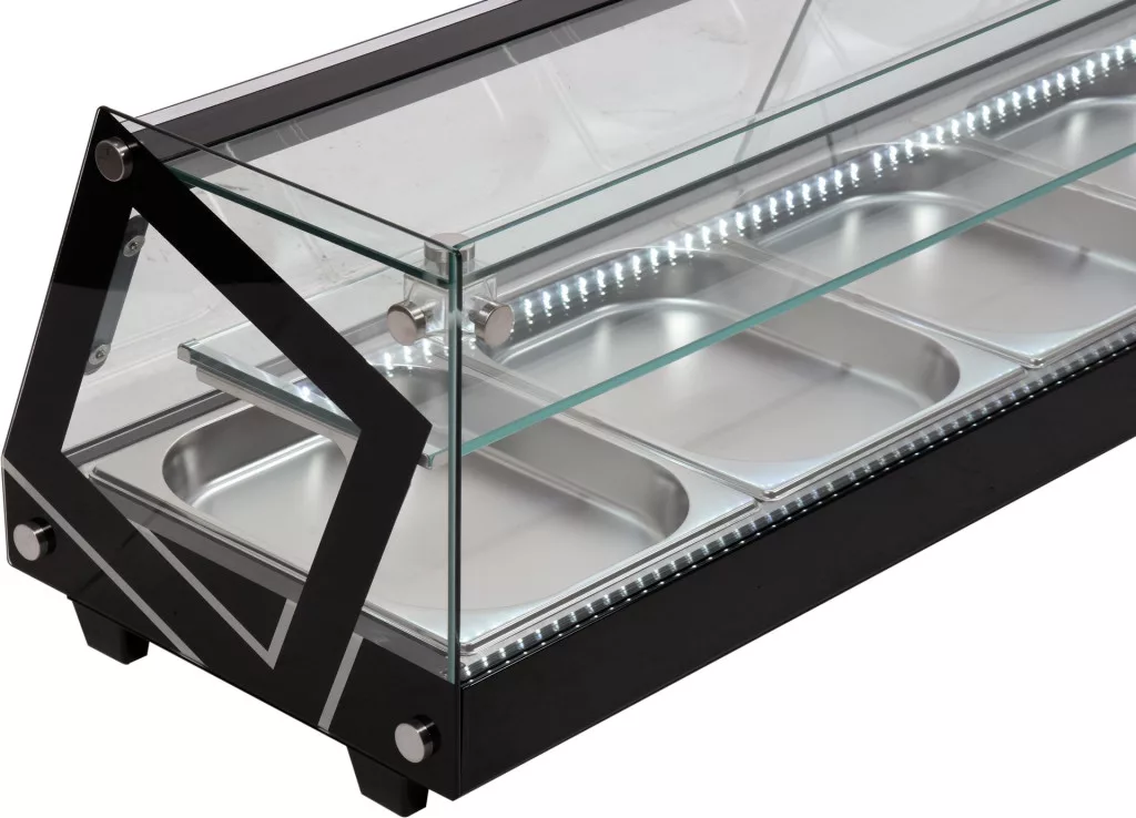 5x1/2GN hűtővitrinje sushi, tapas és különféle előételek bemutatására szolgál.