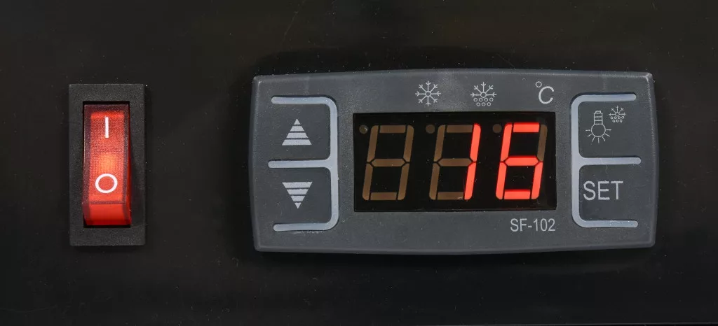 A vitrin 0-+12°C hőmérséklet-tartományban működik R600a hűtőközeggel.