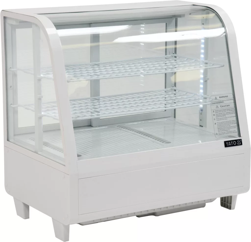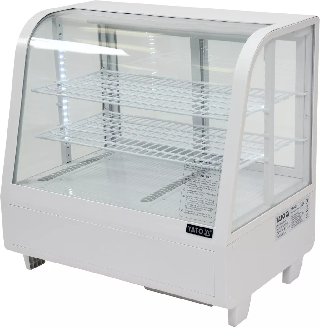 YATO állítható hűtővitrin 100L űrtartalommal, fehér. A modern dizájn a kiváló minőségű alapanyagokkal kombinálva a YATO hűtött vitrint minden típusú cukrászdában, kávézóban, étteremben és kiskereskedelmi üzletben remekül fest. Emellett a beépített LED-es világítás nagyon vonzóan emeli ki a bemutatott ételeket, és arra ösztönzi a vásárlókat, hogy azok közül válasszanak.