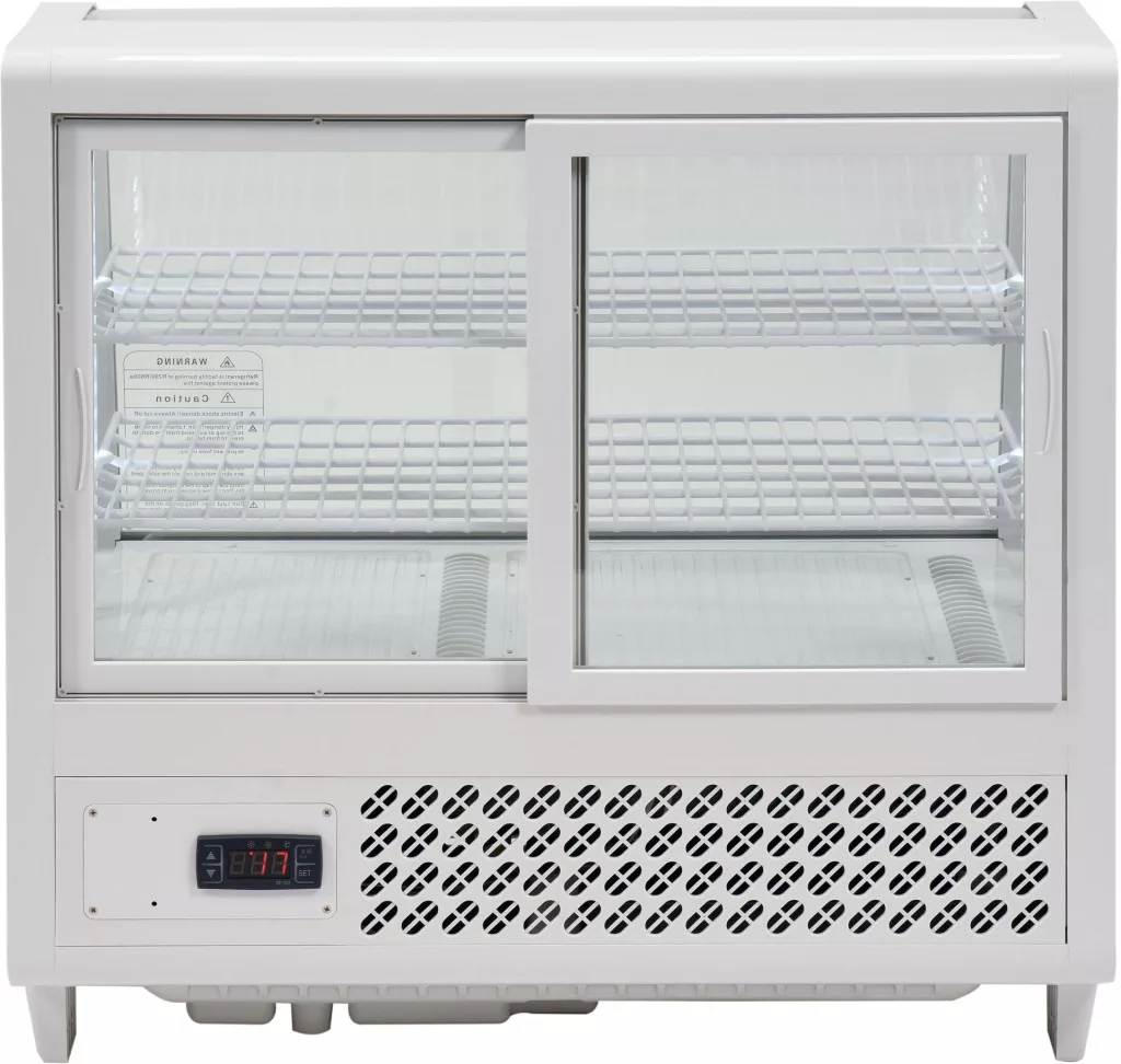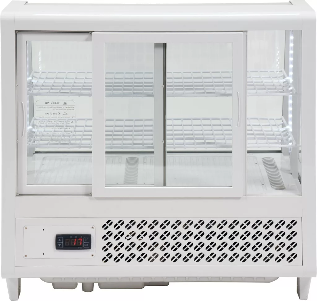 állítható hűtővitrin 100L űrtartalommal, fehér.