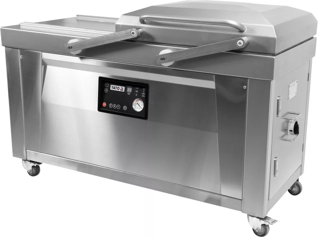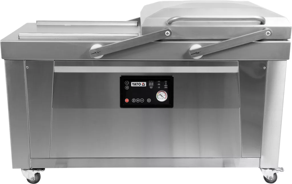 Kétkamrás vákuumcsomagoló gép a YATO-tól 600 mm-es tömítési szélességgel.