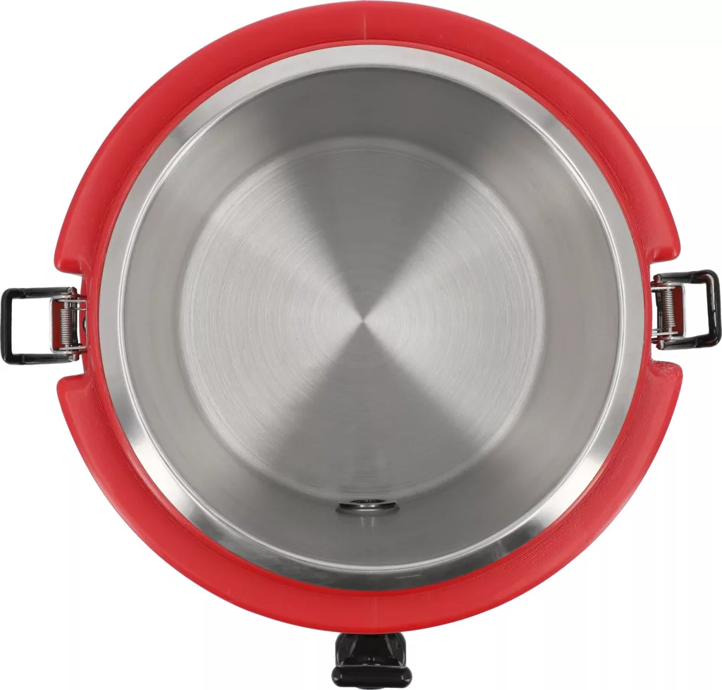 Vendéglátóipari izotermikus tartály csapteleppel. Kiváló minőségű polietilénből készült, amely a kezelés és szállítás során karcolás- és horpadásálló. A tartály belseje kiváló minőségű rozsdamentes acélból készült, könnyen tisztítható és ellenáll a szerves savaknak.
