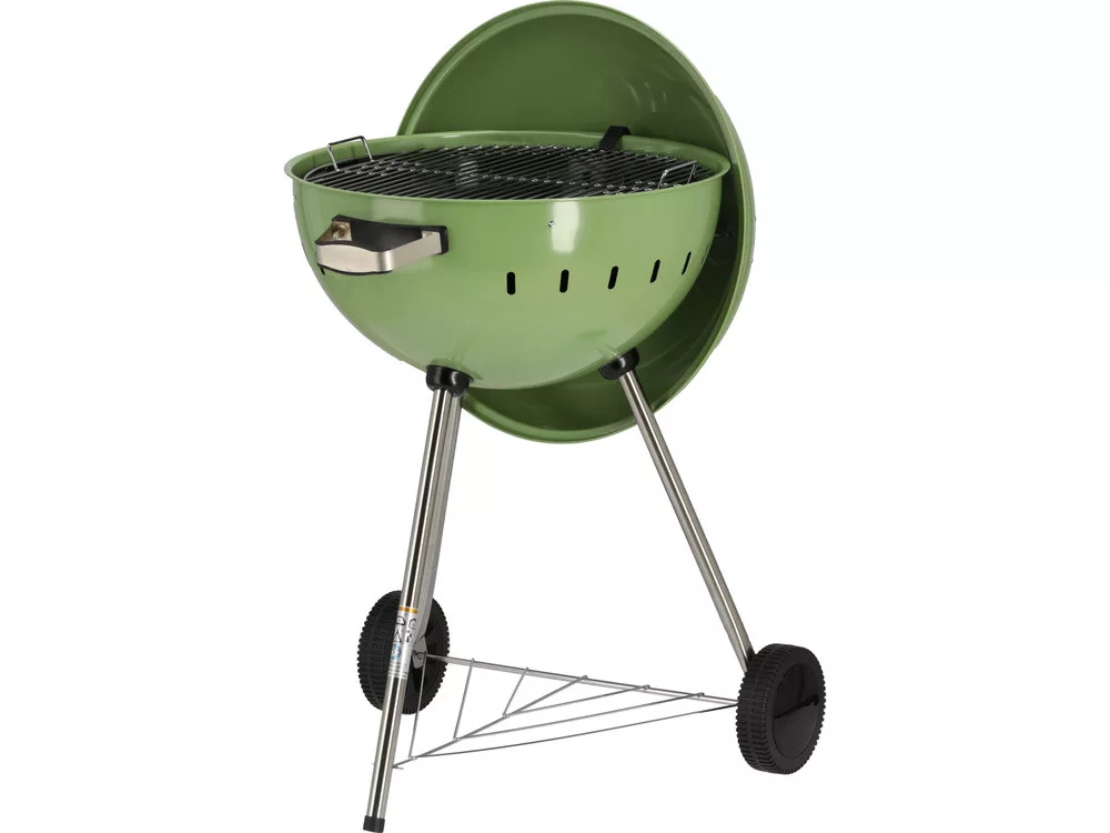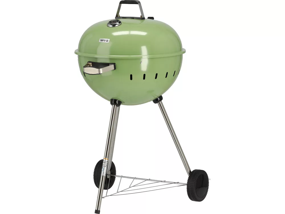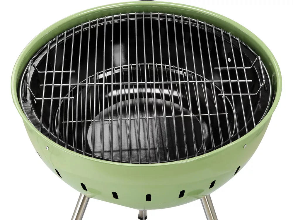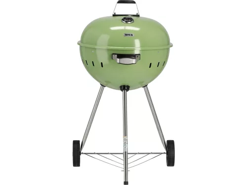 A grill fedele zöld színű, porszórt acélból készült. A fedélbe beépített hőmérő lehetővé teszi a hőmérséklet kényelmes ellenőrzését a grillezés minden szakaszában.