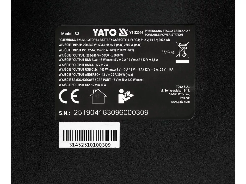 Yato hordozható energiaellátó állomás 3600W, 3072Wh lifepo4, EPS