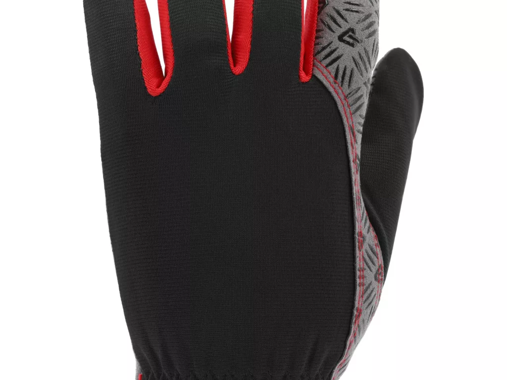 Ez a könnyű munkavédelmi kesztyű a fogó részén a legújabb generációs szintetikus bőrből készült, amelyhez egy kiegészítő anti-slip mintázat is társul. Ennek köszönhetően a nagyobb tárgyak mozgatása során a fogás stabilitása és a kontroll érzetének kényelmi szintje jelentősen javul. A gumirozott, tapadást fokozó minta és a felhasználás közbeni nyomáseloszlás optimalizálása együttesen segíti a megbízható tárgyfogást anélkül, hogy a kesztyű túlzottan megvastagodna vagy merevvé válna.