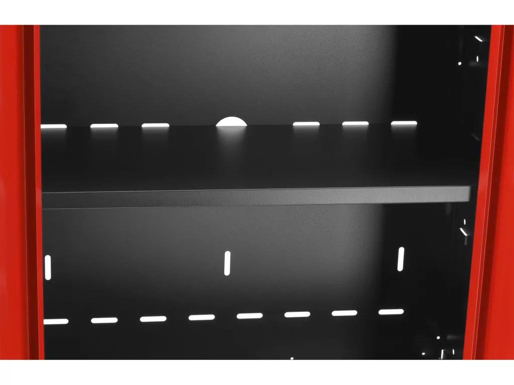 Ez a masszív műhelyszekrény 0,8 mm vastag acéllemezből készült, amely porfestékkel van bevonva a korrózióval és a mechanikai sérülésekkel szembeni ellenállás növelése érdekében. A kompakt méretű kivitel 660 × 305 × 712 mm, és falra szerelhető kialakítású, így a munkafelület felett elhelyezve biztosítja a könnyű hozzáférést az eszközökhöz és a tartozékokhoz. A dupla ajtó lezárható, a zárhoz 2 kulcs tartozik, amelyek a csomagban találhatók. A stabil konstrukció és a 15 kg-os súly hozzájárul a hosszú távú tartóssághoz és a biztonságos használathoz.