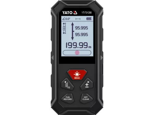 Kültéri mérésekhez a videóelőnézetet biztosító YT-73128 típusú készülékkel végzett mérésekhez ideális lehet. A készülék mindkét oldalról történő mérésre képes, ezzel megkönnyítve a helyiségek méreteinek gyors felmérését bármely irányból. A készülék a rögzített paraméterek és a beépített funkciók közép- vagy hosszabb távú feladatokhoz is hasznos eszköz lehet, legyen szó összetett feladatokról vagy egyszerű, gyors kiszámításokról.