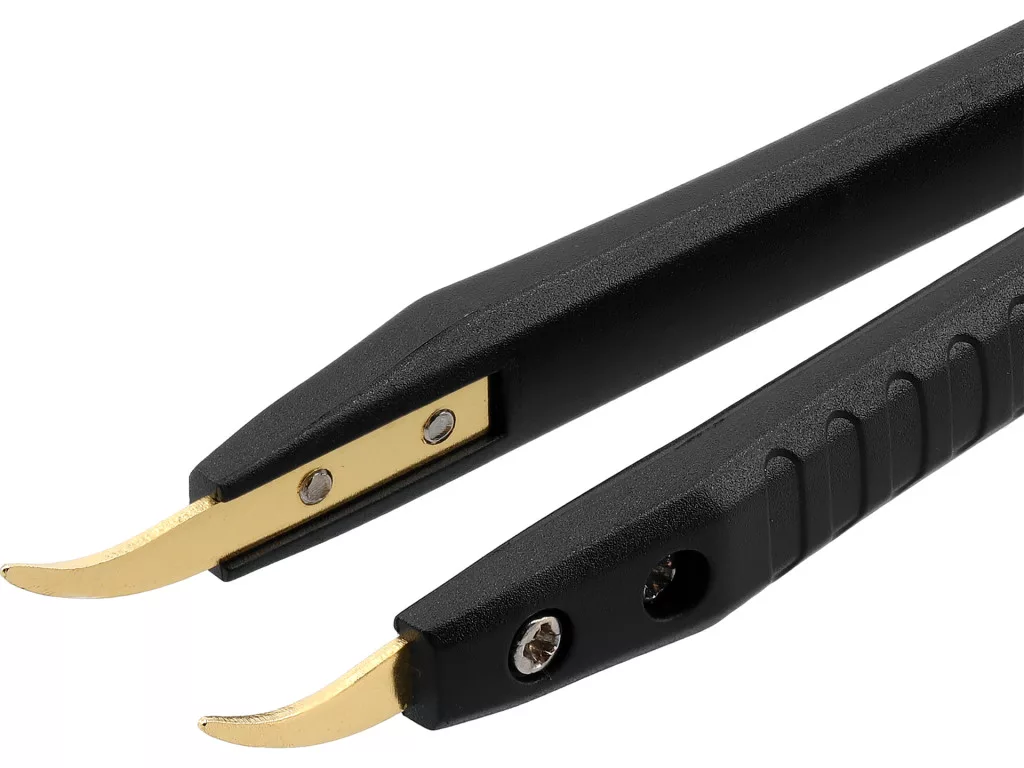 Precíz elektronikai alkatrészek tesztelője csipesz formájában, amely SMD- és through-hole alkatrészekkel való munkára szolgál.