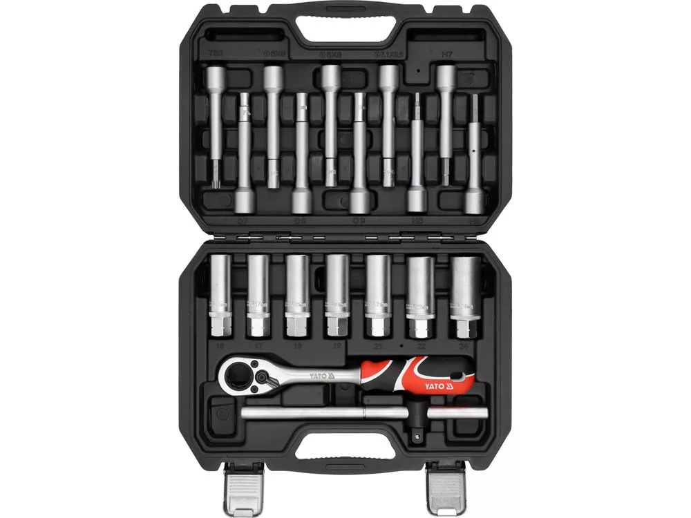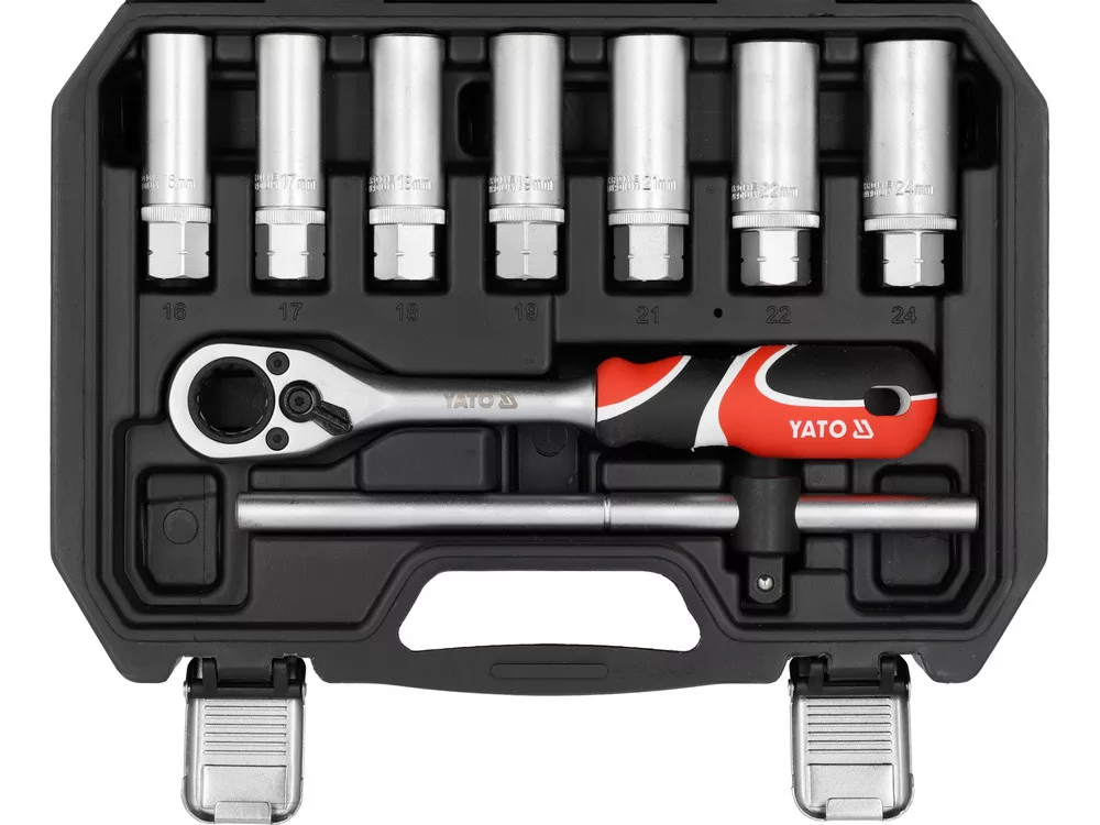 Speciális racsnis kulcskészlet lengéscsillapítók szereléséhez és javításához. Alkalmas a legtöbb személygépkocsihoz. Lehetővé teszi a lengéscsillapító oszlopot rögzítő csavarok egyszerű lazítását és meghúzását.