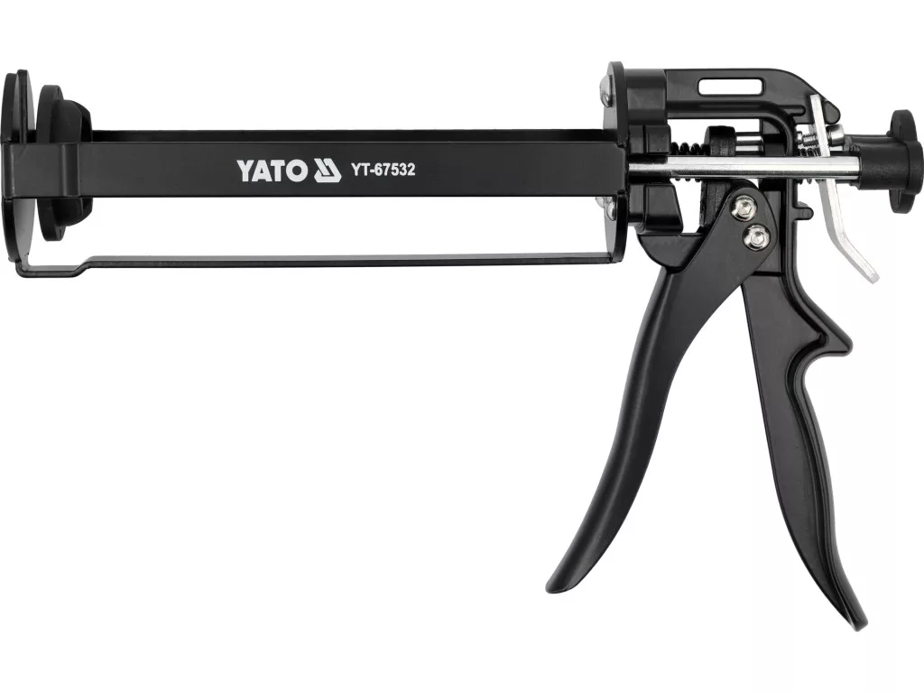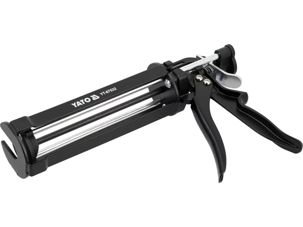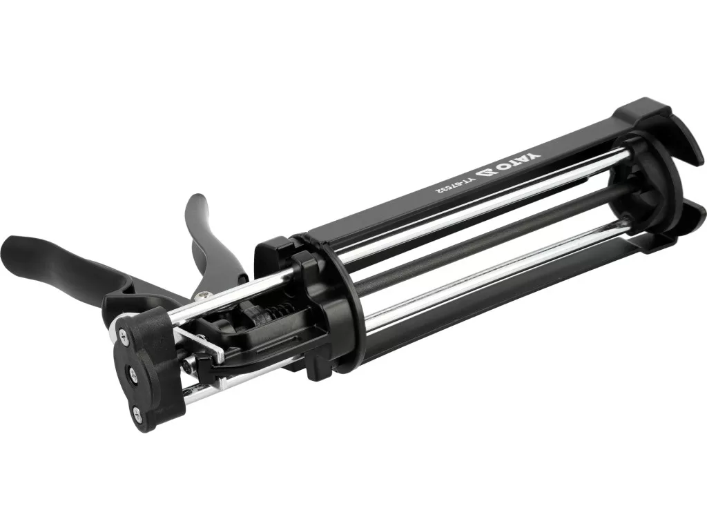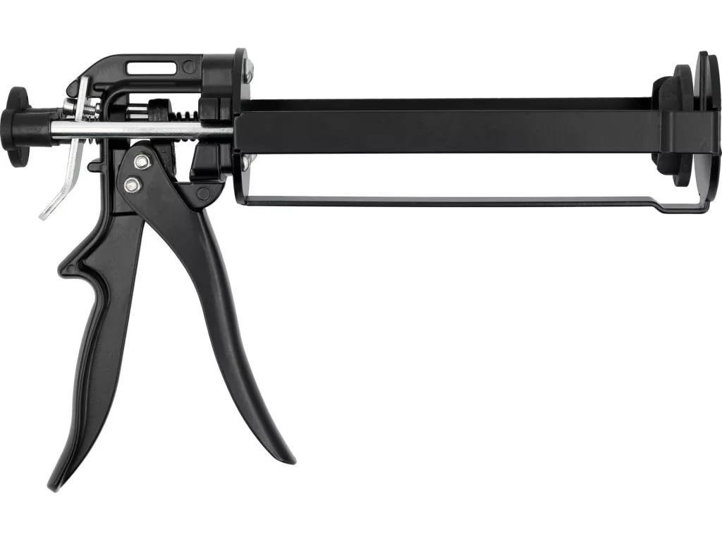 Erősített tömítőpisztoly professzionális alkalmazásokhoz: szilikonokhoz, akrilokhoz, szerelőragasztókhoz és más, 300 ml-es patronokban kapható anyagokhoz. A 200 mm hosszúságú kivitel (9 hüvelyk) a magas viszkozitású masszák kezelésére lett tervezve, ahol fontos a dugattyú vezetésének stabilitása és az anyag egyenletes adagolása. A szerszám építőipari, szerelési és telepítési munkákhoz egyaránt megfelelő, legyen szó precíz tömítésről vagy szélesebb körű alkalmazásokról._x000D_