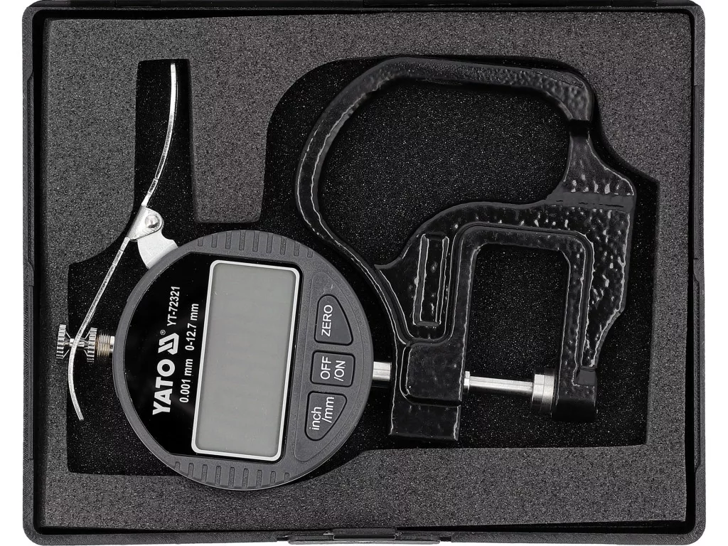Elektronikus vastagságmérő, pontosság ±0,001 mm, precíz mérőeszköz, amely különböző anyagok vastagságának meghatározására alkalmas, ideértve fémlemez(ek), lemezek, lapok, papír, műanyag és üveg vastagságát. A mérőműszer a pontos és ismételhető mérési eredményeket biztosít, elektronikus olvasóval és LCD kijelzővel.