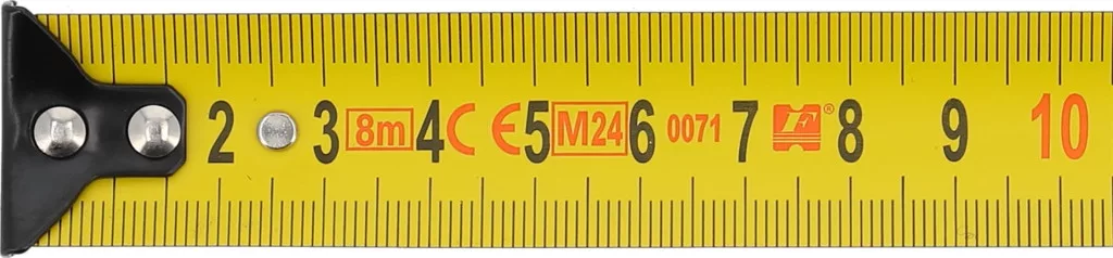 Szalag hossza: 8 m Típus: feltekercselhető Szalag szélessége: 25 mm Szalag anyaga: acél Ház anyaga: ABS, gumi Metrikus skála: igen Inch skála: nem Mérési pontosság: II. osztály Rögzítőgomb száma: 1