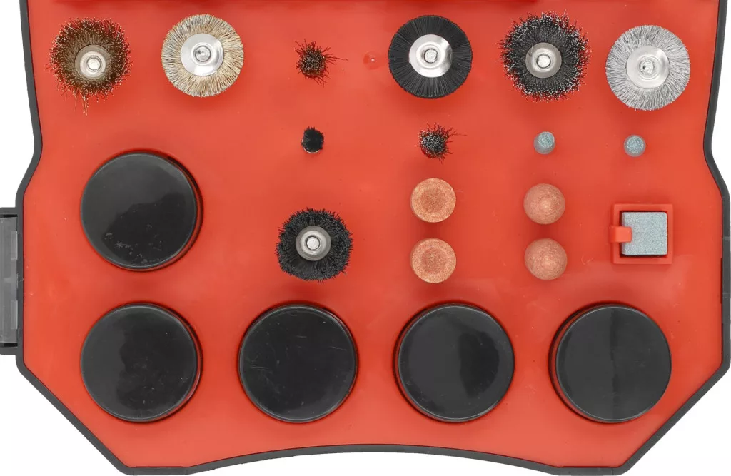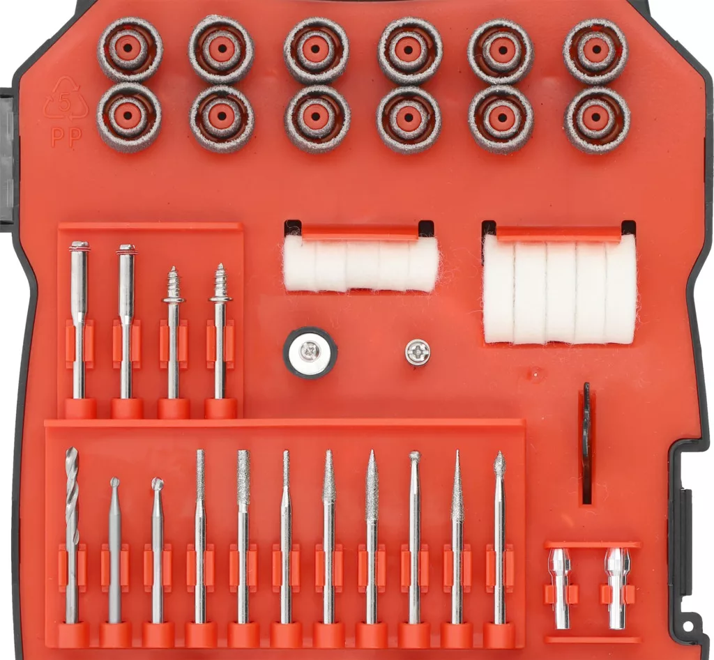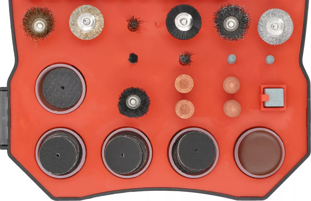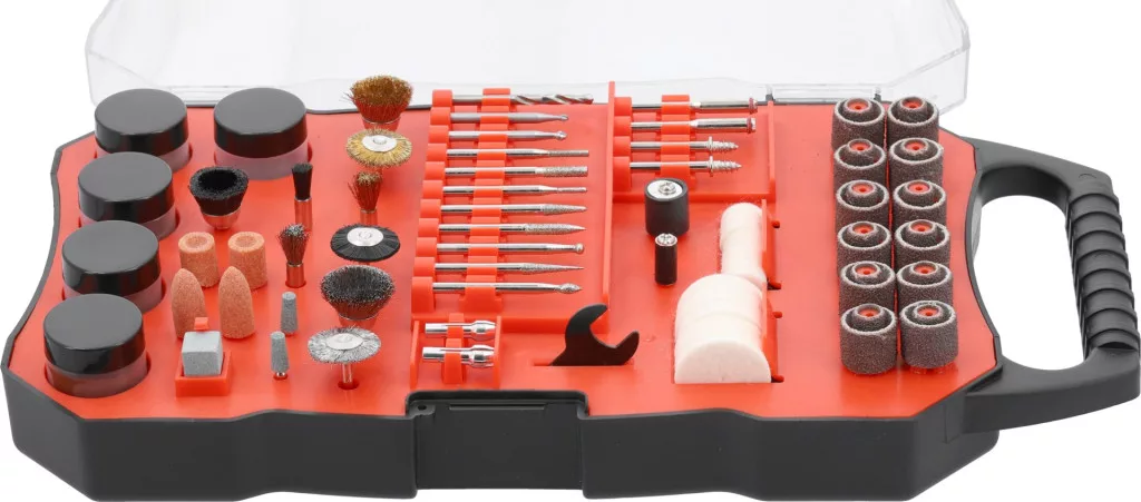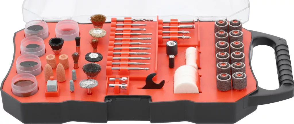 A 201 kiváló minőségű alkatrész, köztük tárcsák, gyémántfúrók, marók és kefék, amelyek a vágástól és csiszolástól a polírozásig és fúrásig sokféle munkavégzést tesznek lehetővé, pontosan és hatékonyan.