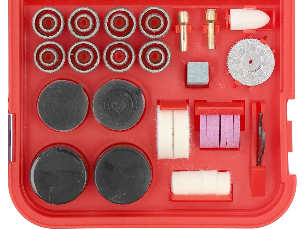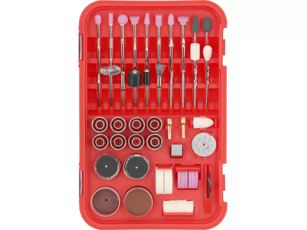 157 kiváló minőségű elem, köztük tárcsák, gyémántfúrók, marók és kefék, amelyek lehetővé teszik a különféle munkák pontos és hatékony elvégzését, a vágástól és csiszolástól a polírozásig és fúrásig.