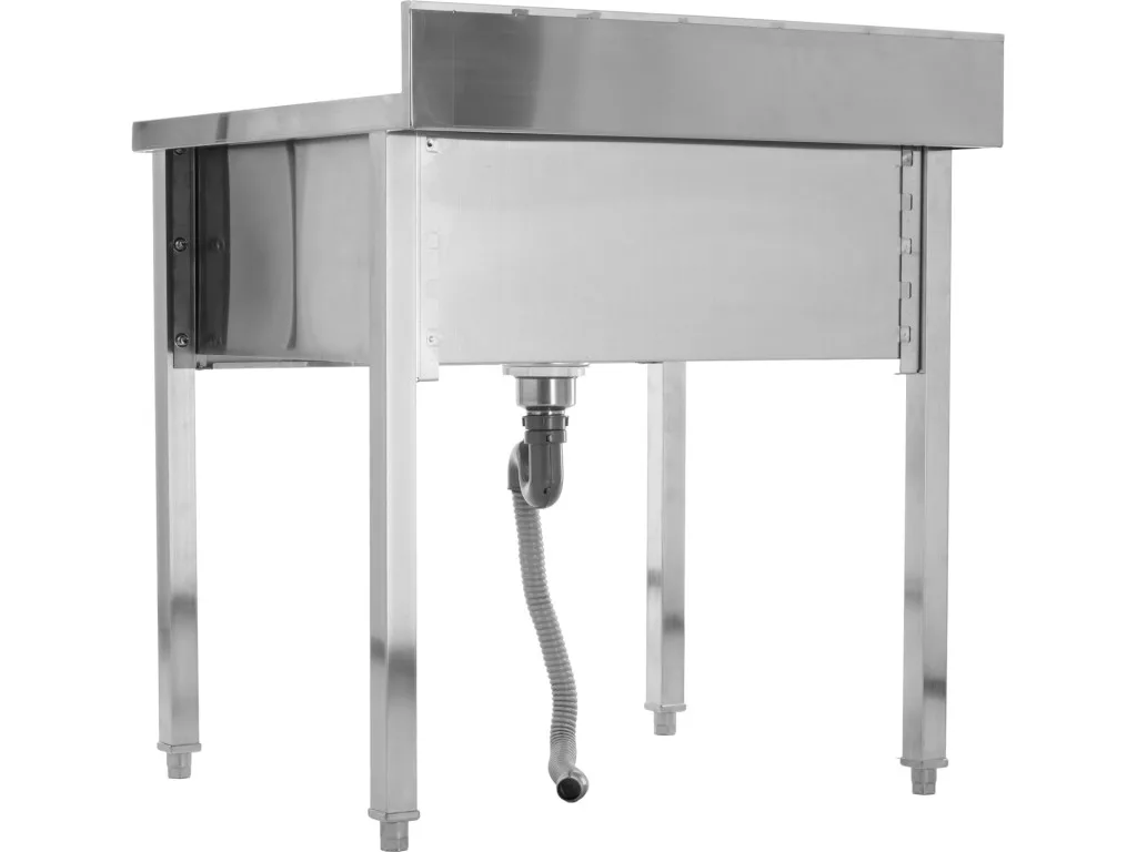 Mosogatós munkaasztal HoReCa beépítéshez SS201, 1,0 mm top, 0,8 mm váz, 300 mm mosogató, hegesztett higiénikus felület, alsópolc, állítható lábak, 100 mm hátsó él, 850 mm magas, 1000x700x950.