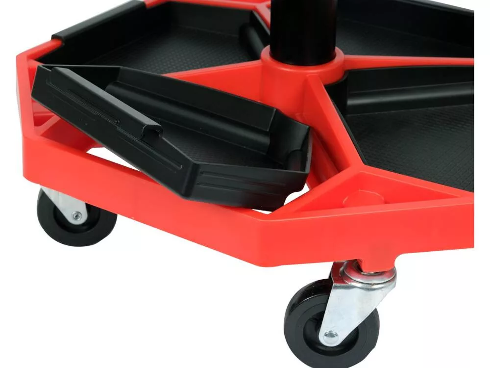 Műhelyzsámoly szerszámtárolóval 140 kg, habszivaccsal és puha vinil anyaggal párnázott ülés zsír- és olajálló.