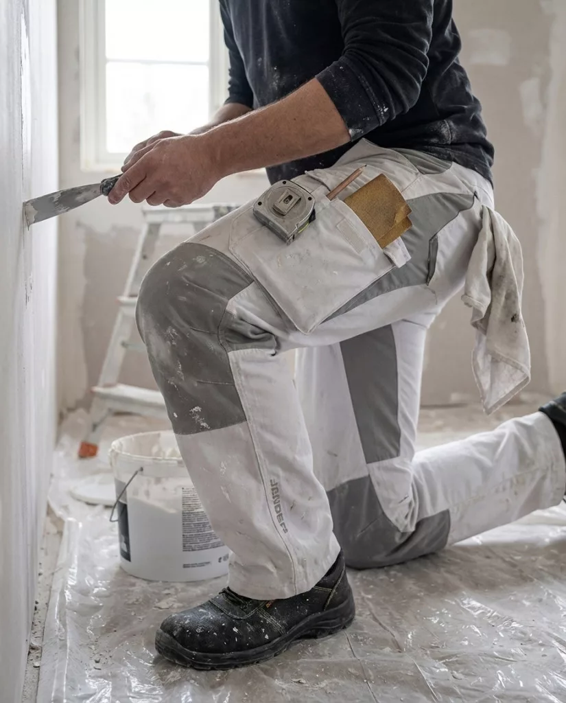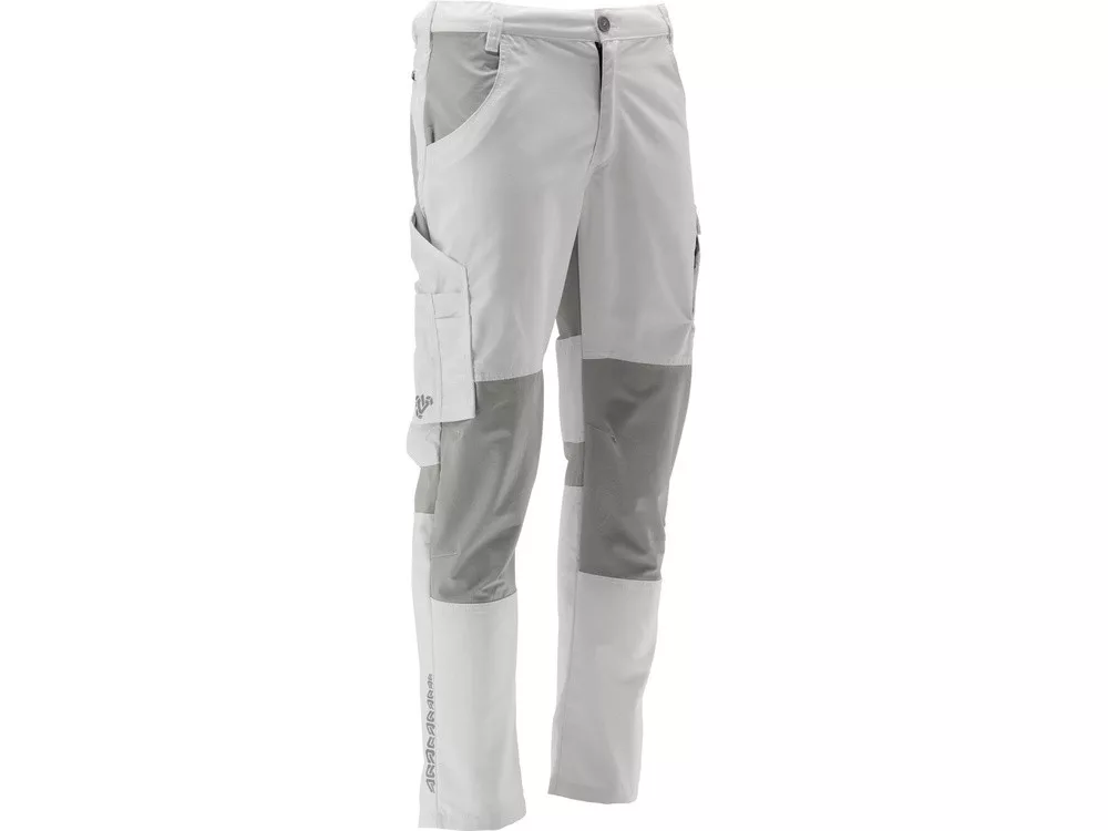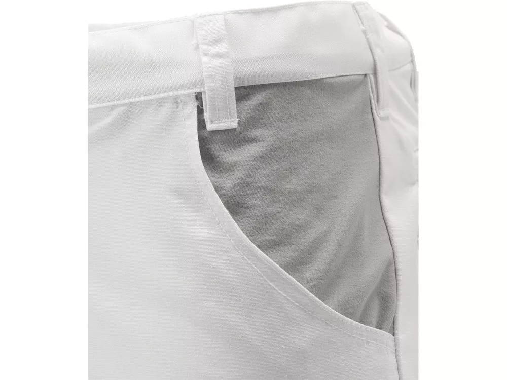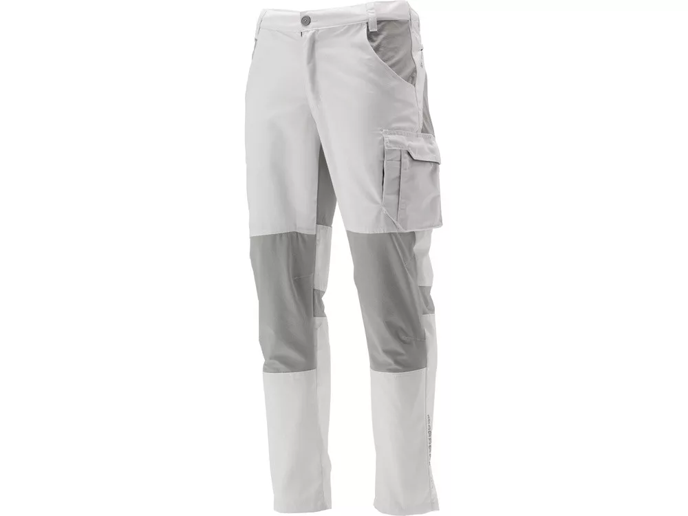 Munkavédelmi hosszúnadrág, sztreccs anyagból készült betétekkel, tizenegy zsebbel, körülbelül 4 cm-rel rövidíthető, számos fedővarrás a szakadásnak leginkább kitett helyeken.