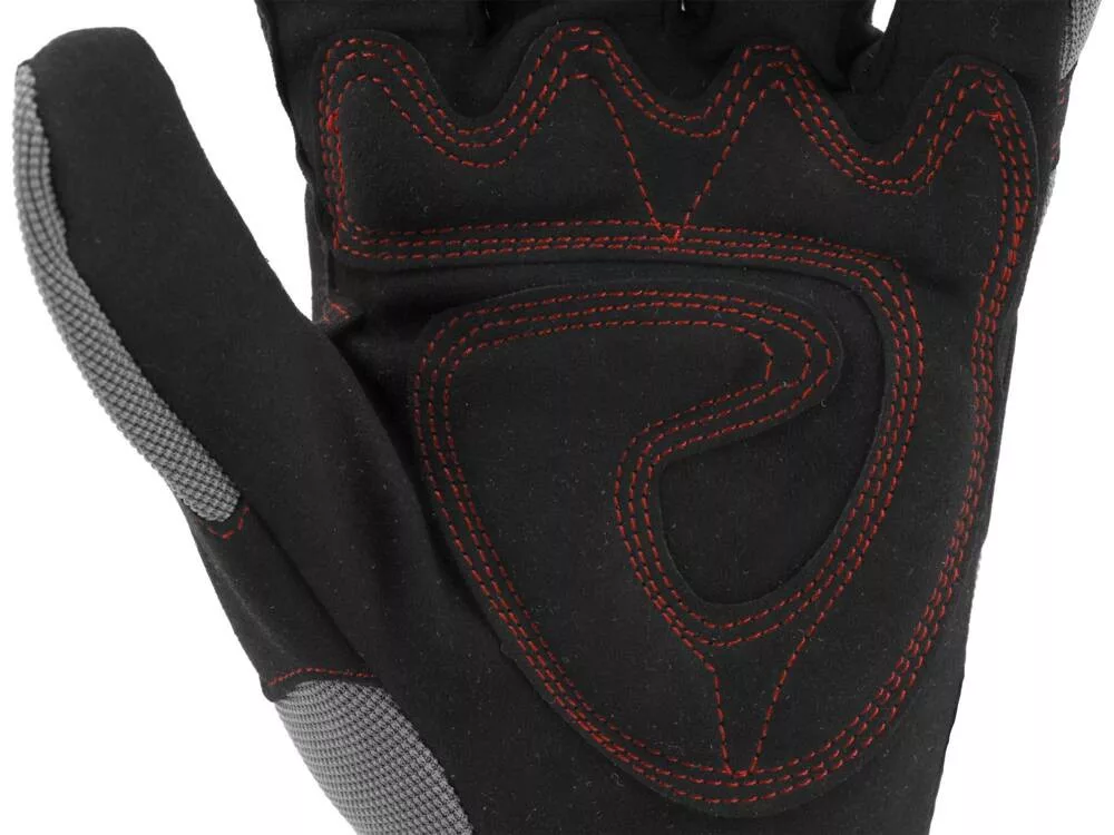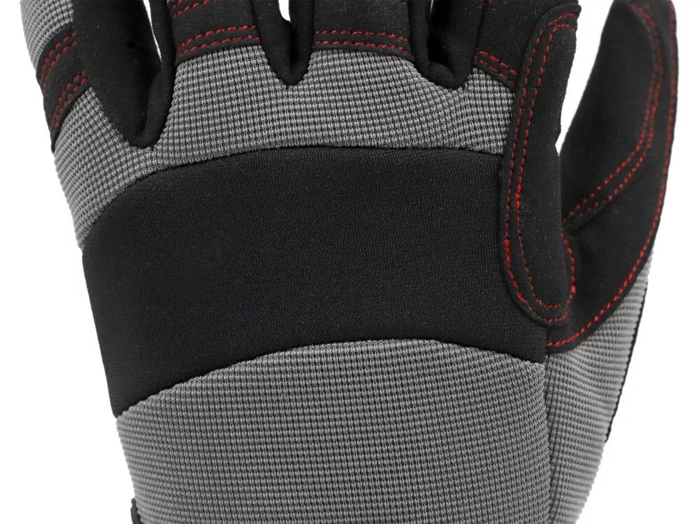 Szintetikus bőrből készült, kétrétegű szövet spandexszel és neoprénnel. Szintetikus bőr további megerősítésekkel a markolatrészben nagy tartósságot és jó illeszkedést biztosít a kézhez. A párnák védenek a bőrkeményedés ellen. A csuklón lévő neoprén nyúlik. A külső részének tartós nylonból készült, kétrétegű szövete rugalmasságot biztosító anyag hozzáadásával nemcsak a mechanikai veszélyekkel szembeni jó védelmet, hanem a munkavégzés nagyfokú kényelmét is biztosítja.