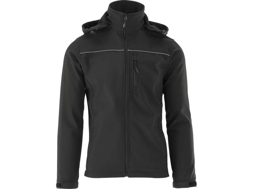 Softshell kabát három zsebbel, vízálló cipzárral és levehető kapucnival.