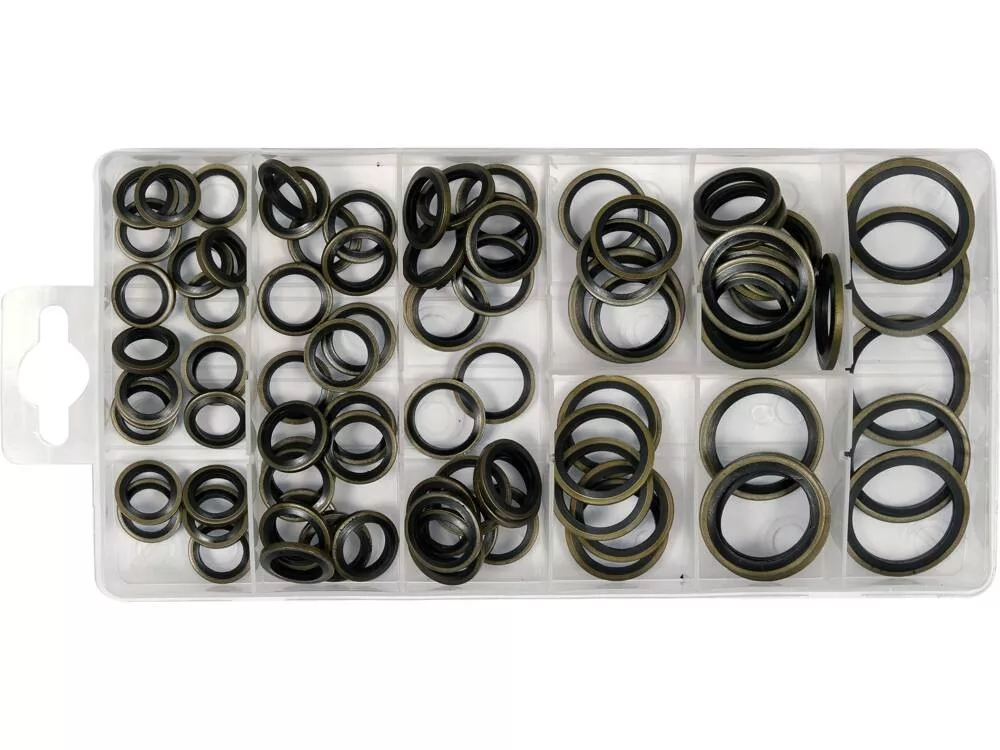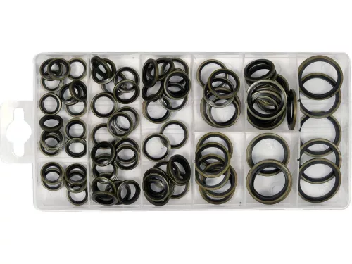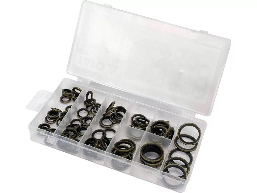 Olajleeresztő csavar alátét készlet 90 részes, praktikus tárolóban.