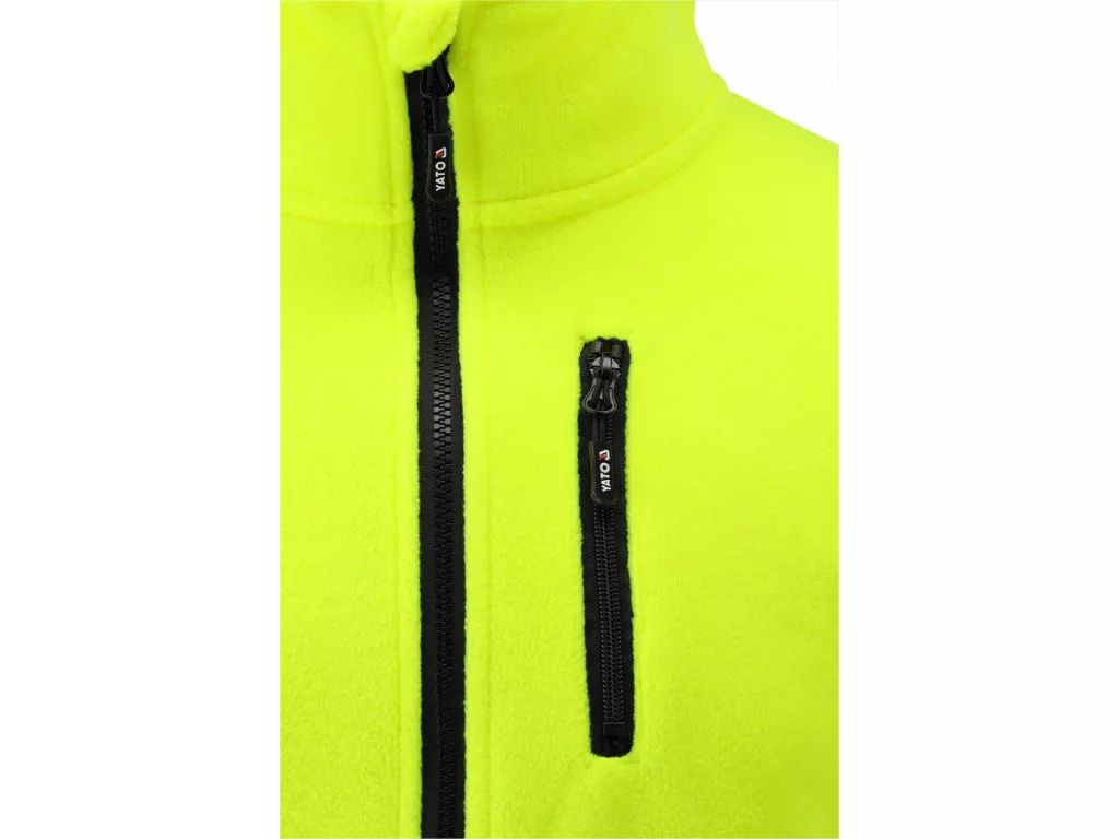Oriolus jólláthatósági polárpulóver, 100% poliészter, 280 g/m². Láthatósági osztály 2, nadrággal kombinálva osztály 3, fényvisszaverő csíkokkal, cipzáras mellkasi és oldalzsebekkel, tartós és hőszigetelt munkaruha.