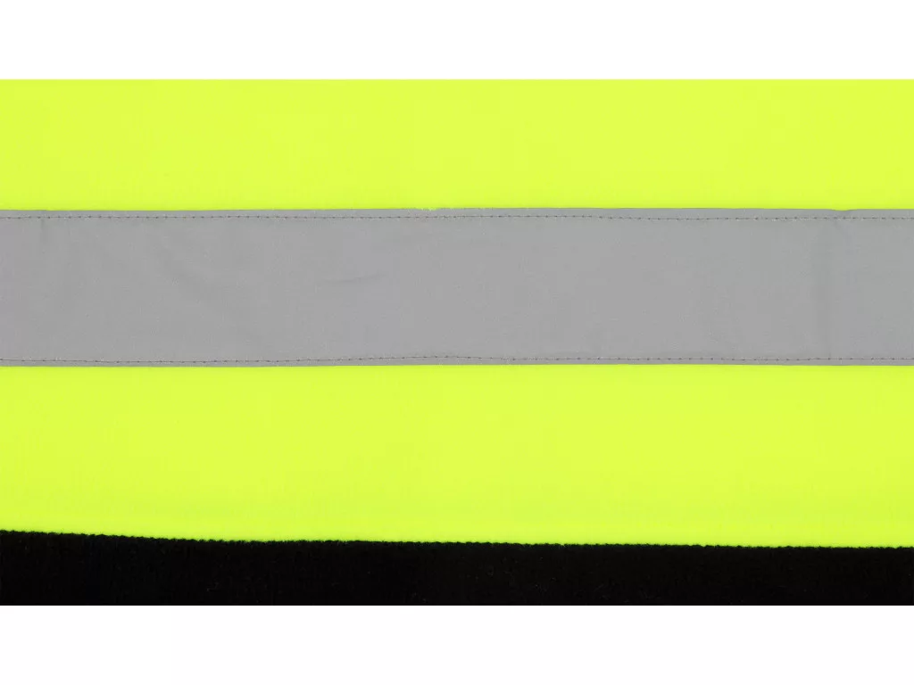 A sorozat egyszerű, műszaki jellegű kialakítását tartós kivitelezés és praktikus felhasználási megoldások jellemzik. A széles, 50 mm-es fényvisszaverő csíkok javítják a viselő láthatóságát nappali és esti fényviszonyok között, növelve a biztonságot járművek és gépek mozgásával érintett területeken. A mellkas alatti kontrasztos, fekete anyagrész csökkenti a szennyeződések láthatóságát, és növeli a polár élettartamát a különösen igénybevett területeken.
