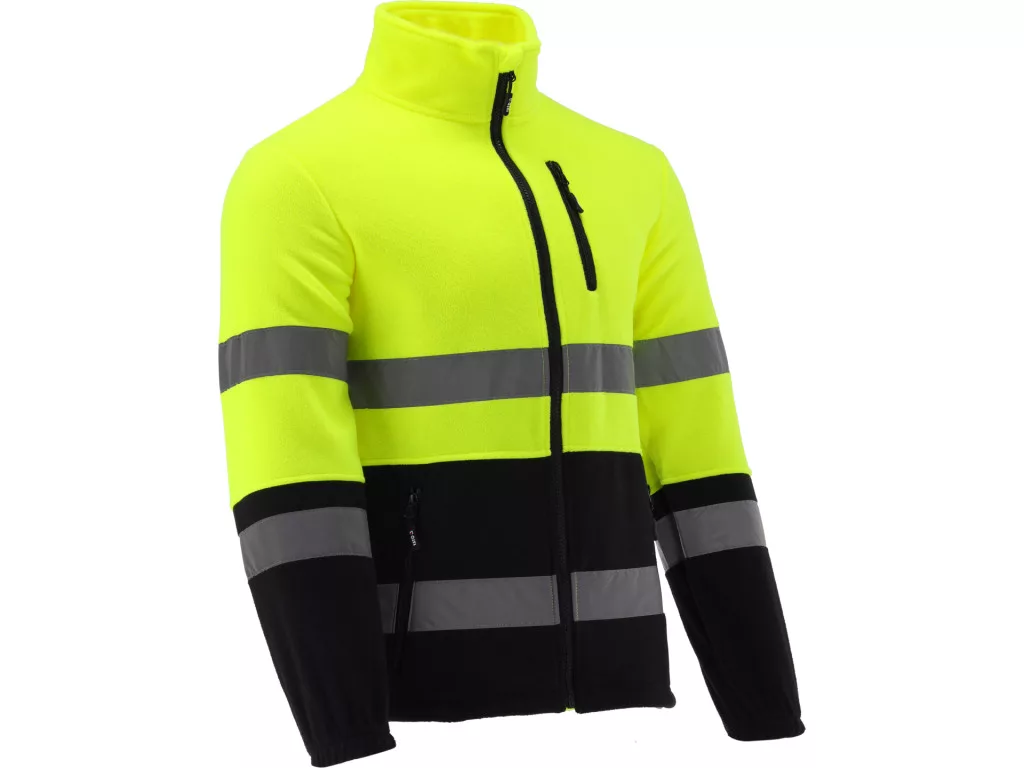 Oriolus jólláthatósági polárpulóver, 100% poliészter, 280 g/m². Láthatósági osztály 2, nadrággal kombinálva osztály 3, fényvisszaverő csíkokkal, cipzáras mellkasi és oldalzsebekkel, tartós és hőszigetelt munkaruha.