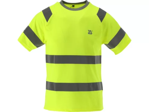 Oriolus jólláthatósági póló, 100% poliészter, 140 g/m², fluoreszkáló sárga. Láthatósági osztály 2, 360°-os fényvisszaverő csíkokkal, légáteresztő, tartós, nadrággal kombinálva osztály 3.