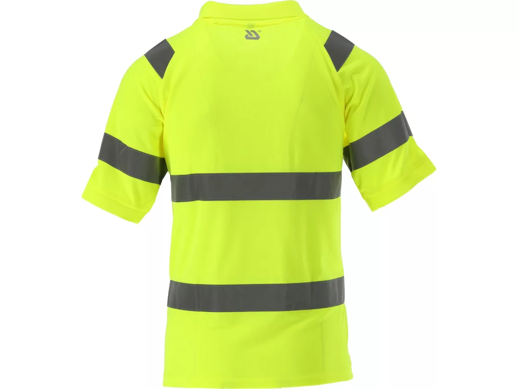 Oriolus jólláthatósági galléros póló (polo), 100% poliészter, 140 g/m², fluoreszkáló sárga. Láthatósági osztály 2, nadrággal kombinálva osztály 3, 360°-os fényvisszaverő csíkokkal, légáteresztő és tartós munkaruha.