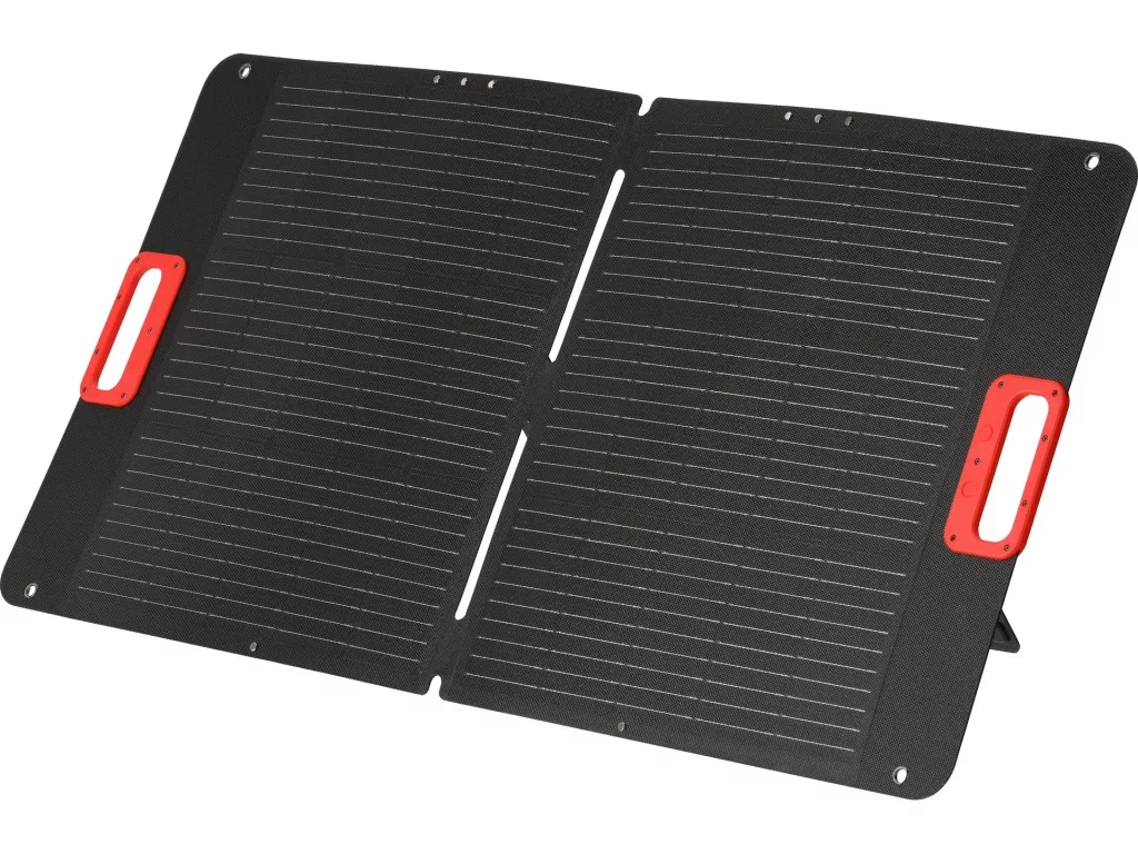 Összecsukható napelemes panel, 100 W kimeneti teljesítménnyel, amely hordozható energiaforrásként használható. A cellákat ETFE laminálás védi a környezeti hatásokkal szemben, így fokozott ellenállást biztosít a szél, eső és egyéb időjárási hatások ellen. A panel állítható konzoljainak és a négy felfüggesztési furatnak köszönhetően a panel kényelmesen pozícionálható a napfény irányába, vagy felakasztható a megadott helyre. A kinyitható kivitelhez a méret és a súly megkönnyíti az átvitelét és a szállítását; a beépített fogantyúk segítik a könnyű hordozást.