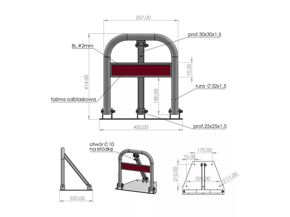 Parkolásgátló, porszórt acélból, ellenáll az időjárási viszontagságoknak, két kulccsal.