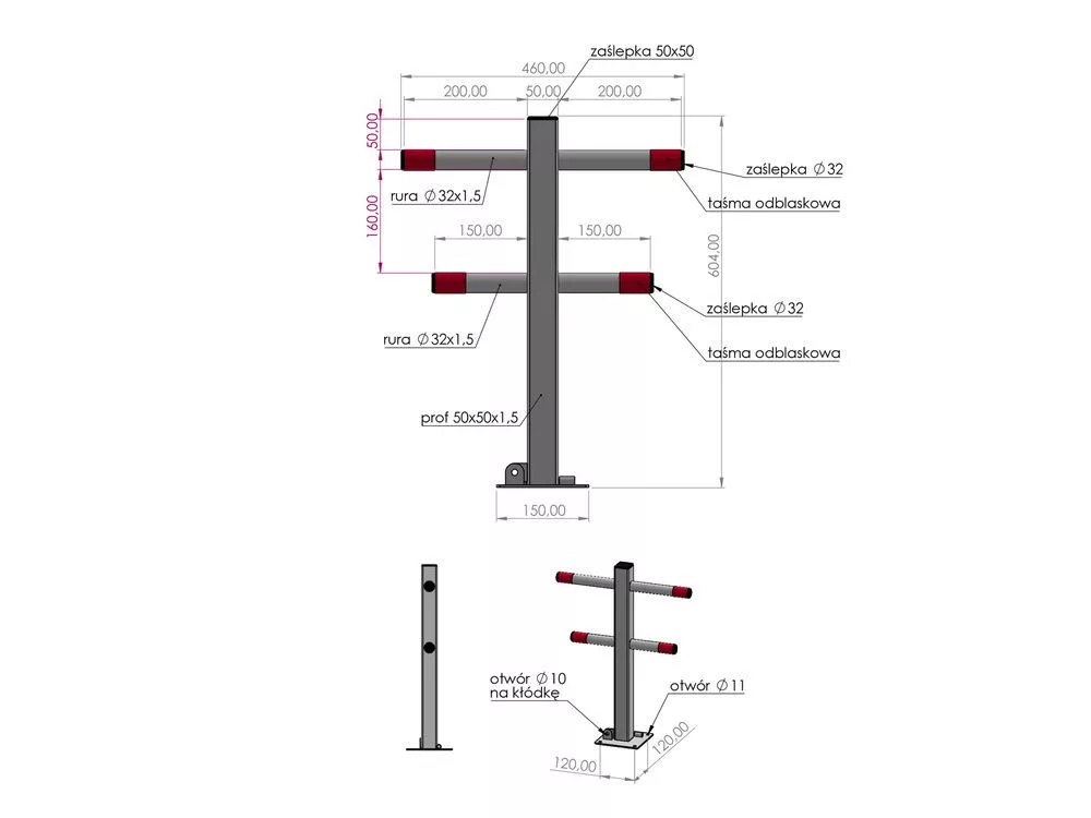 Parkolásgátló, porszórt acélból, ellenáll az időjárási viszontagságoknak, két kulccsal.