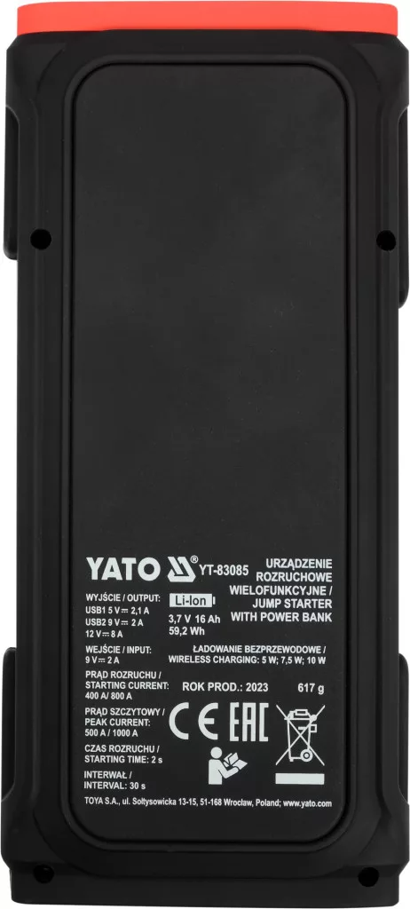 USB aljzat kimeneti feszültsége: 5 (1), 9 (2) V. Maximális egyenáramú aljzat kimeneti áram: 8 A. Akkumulátor kapacitása: akkumulátor kapacitás: 16 Ah