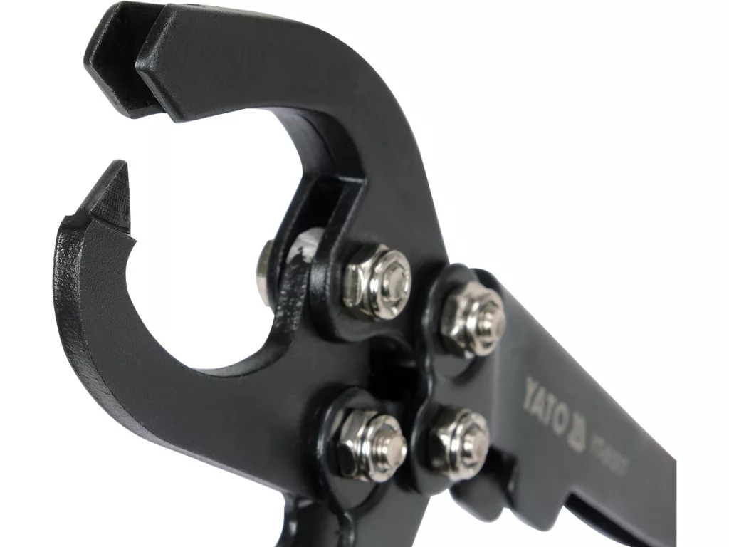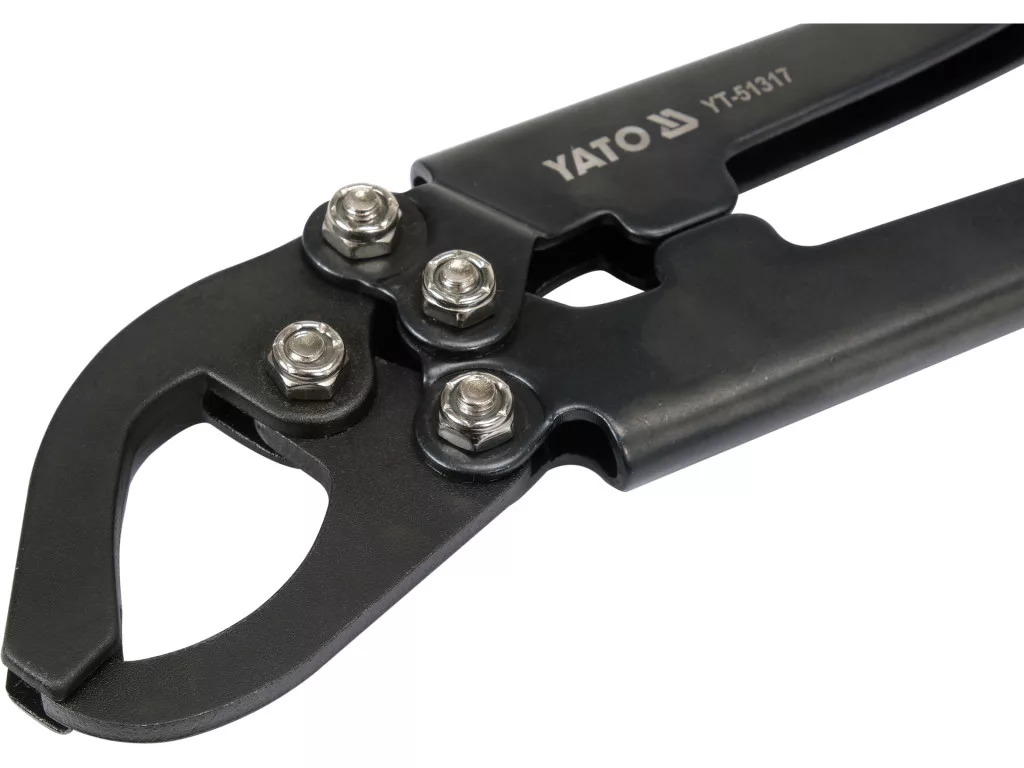 320 mm hosszú speciális fogó a gipszkartonos rendszerek profiljainak tartós és precíz összekapcsolásához. Munkafelület: 65Mn acél, porfestett; max. 3 mm profilvastagságig. Markolat: szénacél, anti-slip PP–TPR bevonatú.