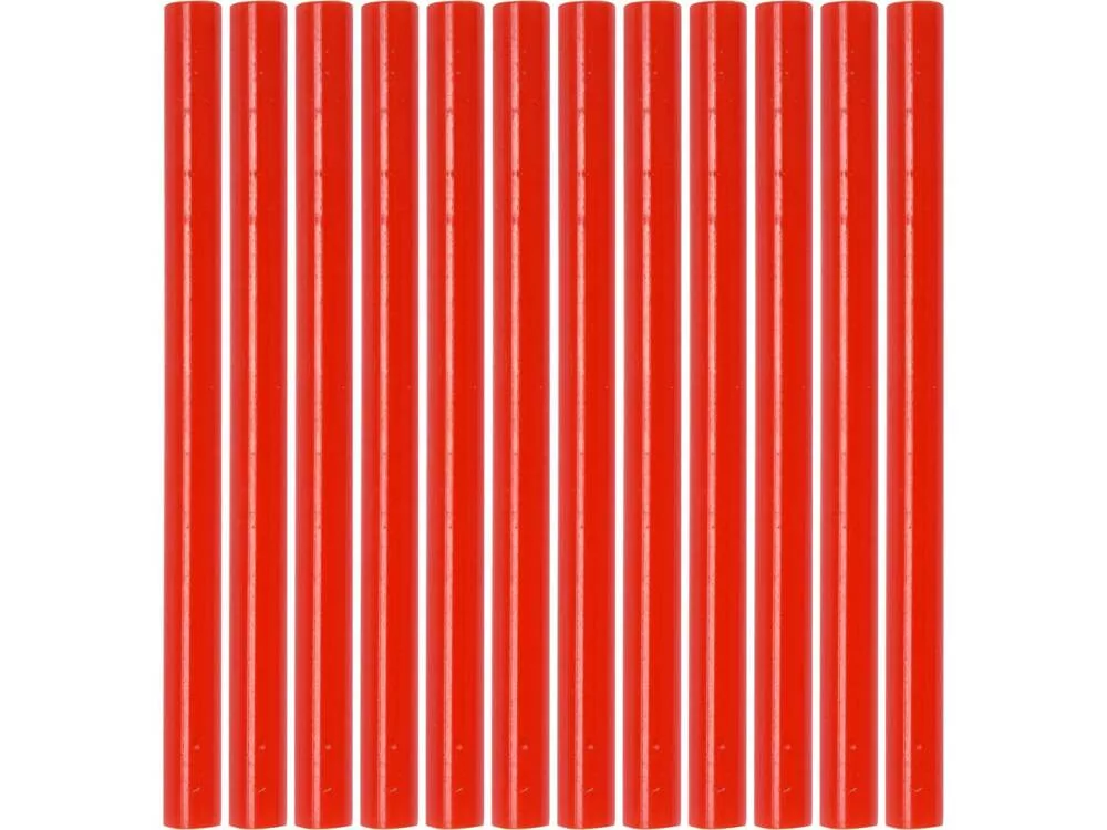 Piros, 7,2 mm átmérőjű és 100 mm hosszúságú ragasztó. A csomag 12 ragasztórúdat tartalmaz.
