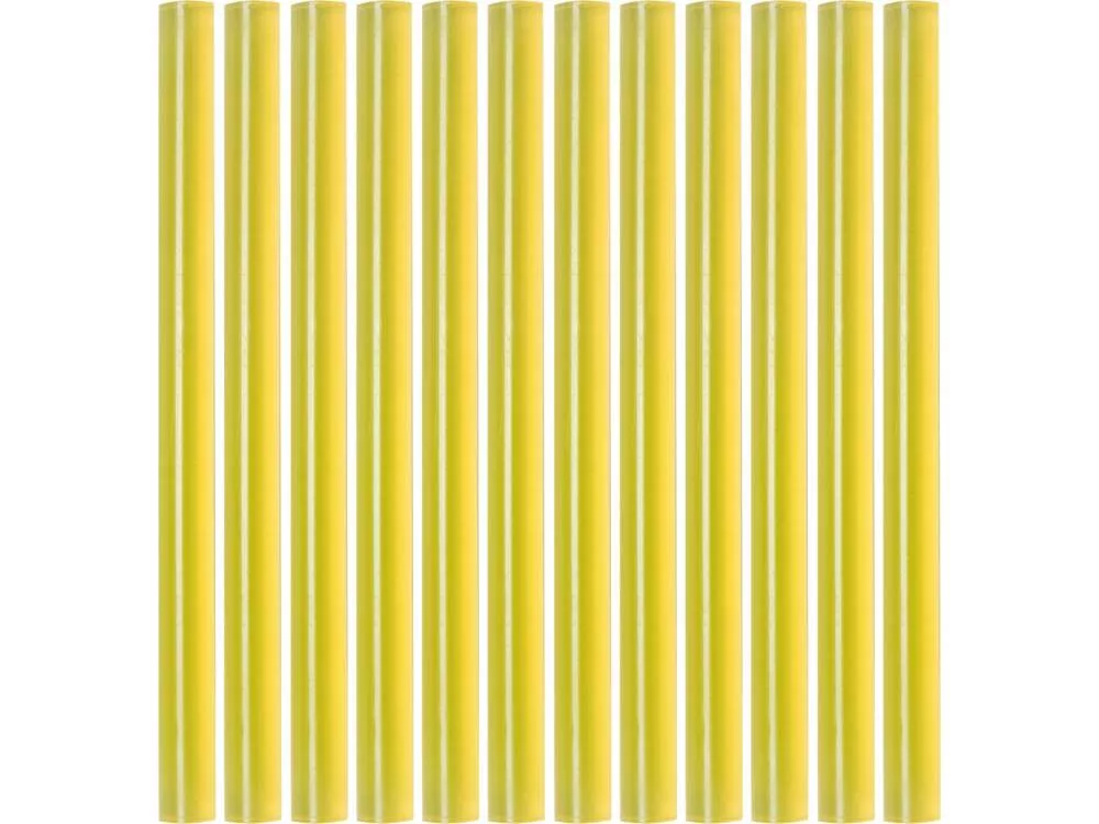 Sárga, 7,2 mm átmérőjű és 100 mm hosszúságú ragasztó. A csomag 12 ragasztórúdat tartalmaz.