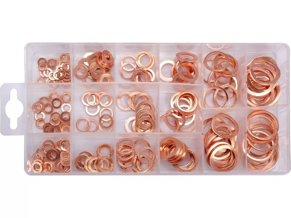 Réz alátét készlet 220 részes, praktikus tárolóban.