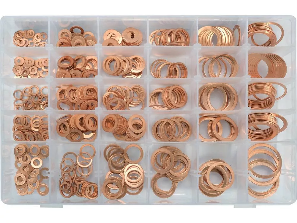 Réz alátét készlet 580 részes, praktikus tárolóban.