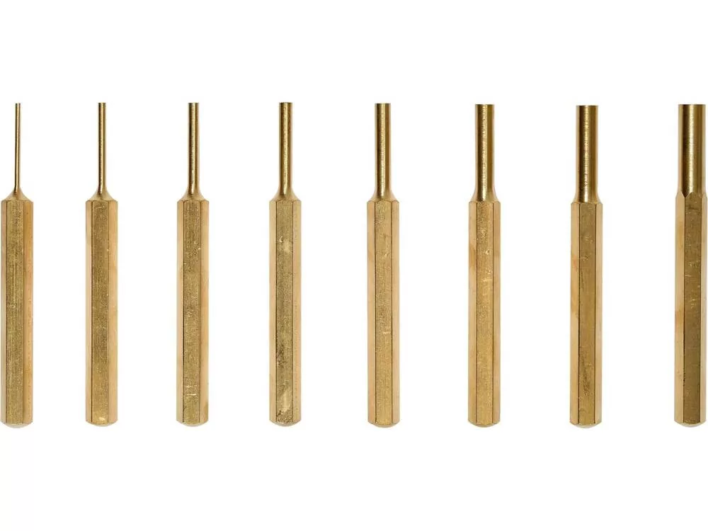 Hatszögletű 8 db- os sárgaréz lyukasztókészlet tépőzáras tartóban.