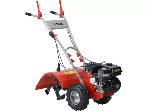 - Yato benzines kapálógép: ez a kb. 5,5-6 lóerős benzines gép már az erősebb rotikapák táborába tartozik. A 4 ütemű motorral üzemelő gép akár 48 cm munkaszélességgel is képes dolgozni, több száz négyzetméteres területre ideális. Elsősorban 200-1500 m2 közötti földterület művelésére ajánlott ez a kapálógép. Sebességszabályozás és hátramenet is segíti a munkát, de nehezebb és karbantartására is oda kell figyelni!