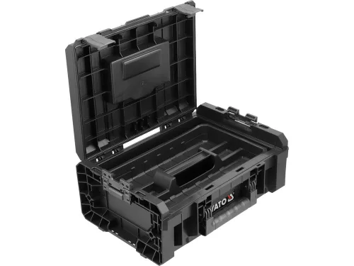 Megkönnyíti a kisebb szerszámok rendszerezését, és hordozóként is használható. A fedél rugalmas tömítéssel van ellátva, amely védelmet nyújt a por és a víz behatolása ellen. A doboz két összecsukható fogantyúval van ellátva.