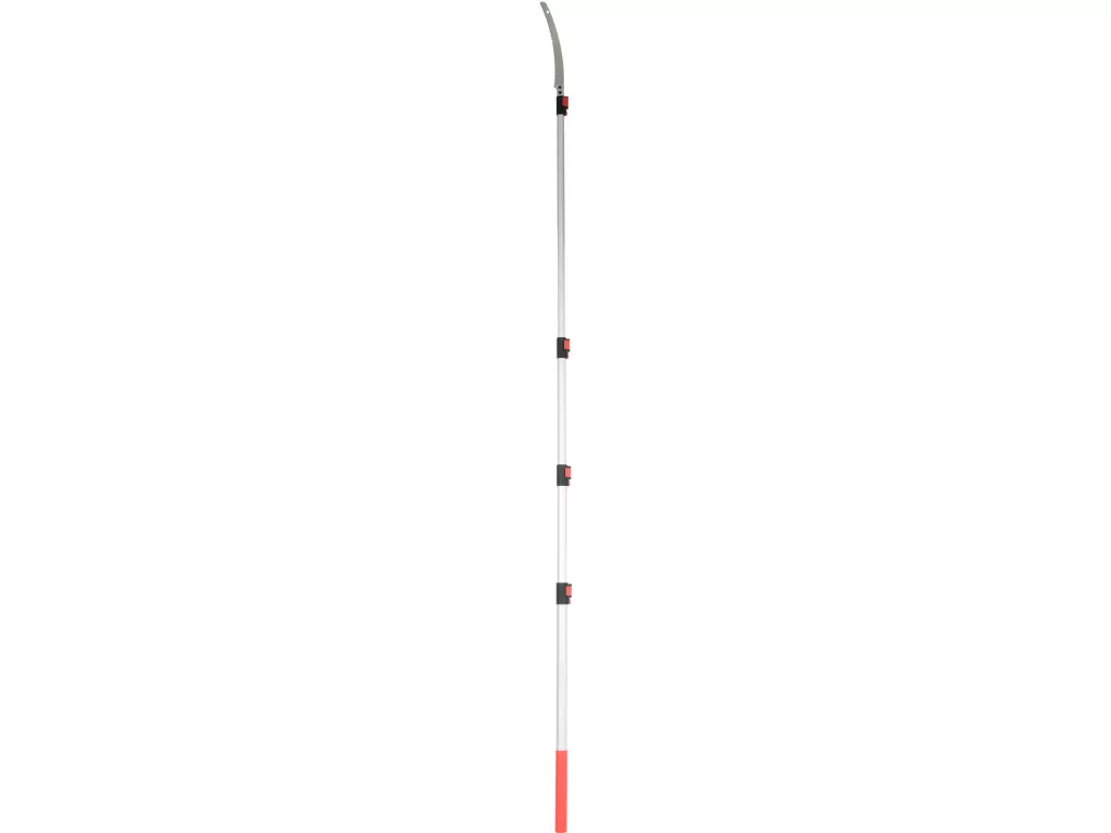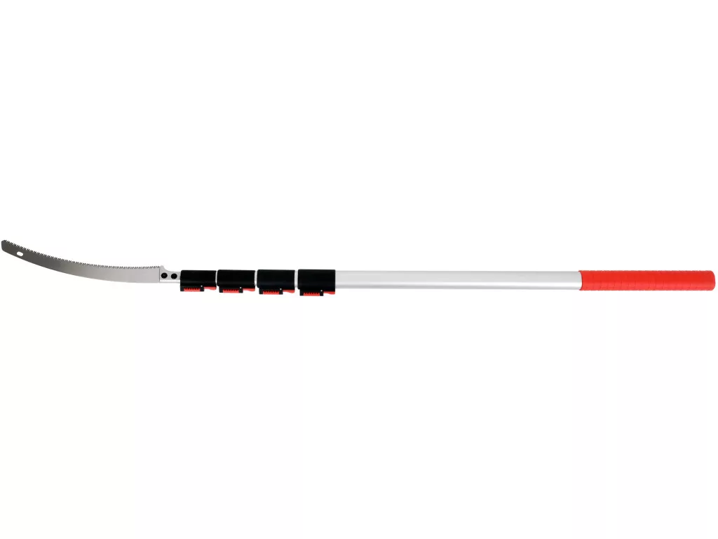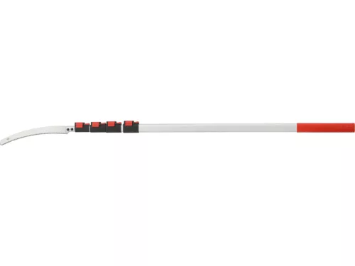 Ágvágó fűrész teleszkópos nyéllel, max. 7 m; teljes hossz 180–500 cm, súly 1800 g. Fűrész: 35 cm, SK5 acél, profilált kivitel, keresztfogazat, edzett 63–67 HRC, védő bevonat. Alumínium nyél csatlakozó, 7 hosszbeállítás.