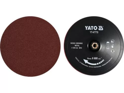 Yato tépőzáras gumitányér 230 mm M14 + 4 db tépőzára fíbertárcsa (P60, P80, P100, P120)