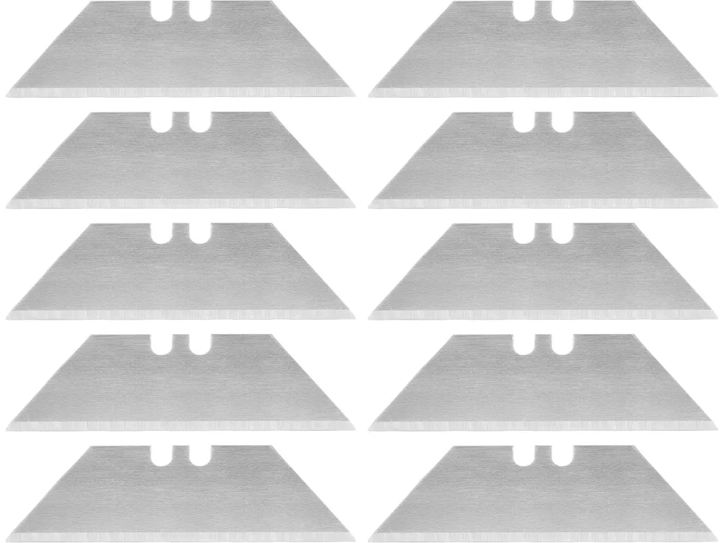 Trapéz alakú tartalék pengék technikai késekhez, amelyeket szerelési, raktári és építési munkákhoz használnak. SK5 szerszámacélból készültek, garantálják a megismételhető élességet és a vágó él egyenletességét rángatás nélkül, amikor csomagolóanyagokkal és műanyagokkal dolgozunk.