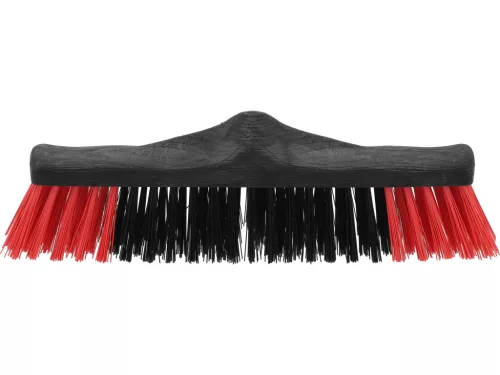 Masszív utcai seprű, külső körülményeknek ellenálló PP-korpusszal, vastag PET/PVC sörtékkel, fekete–piros, 400 mm hosszú.