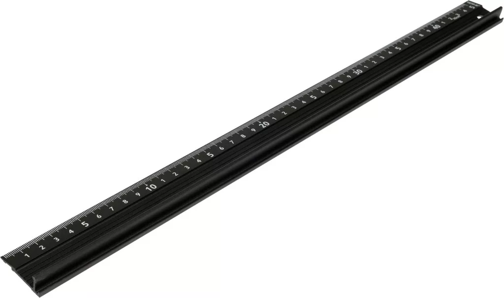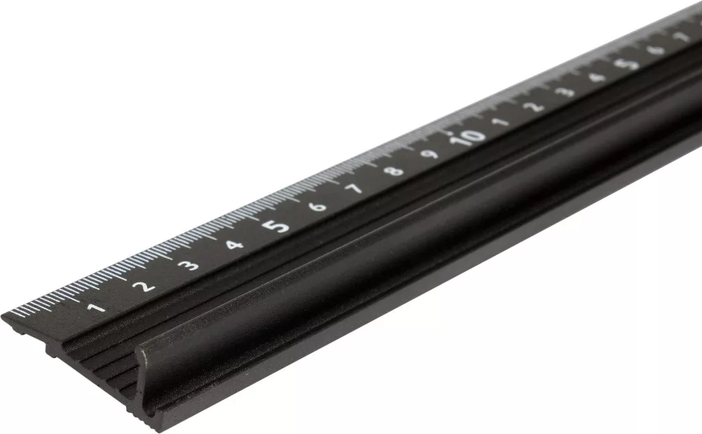 Alumínium vonalzó, amelynek tetején profil található, amely biztonságos fogást biztosít a vonalzó vágás közbeni megtartásához. Az alsó síkot egy habszivacs csíkkal bélelték ki a mérendő anyag védelme érdekében.