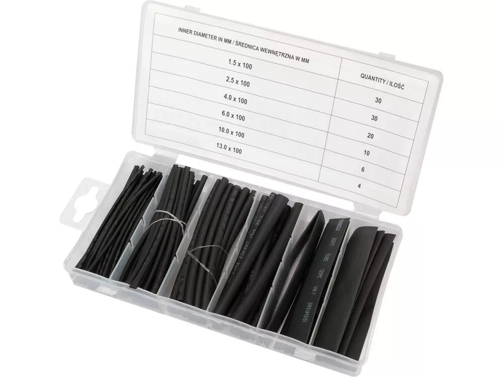 Zsugorcső készlet 100 részes, praktikus tárolóban.